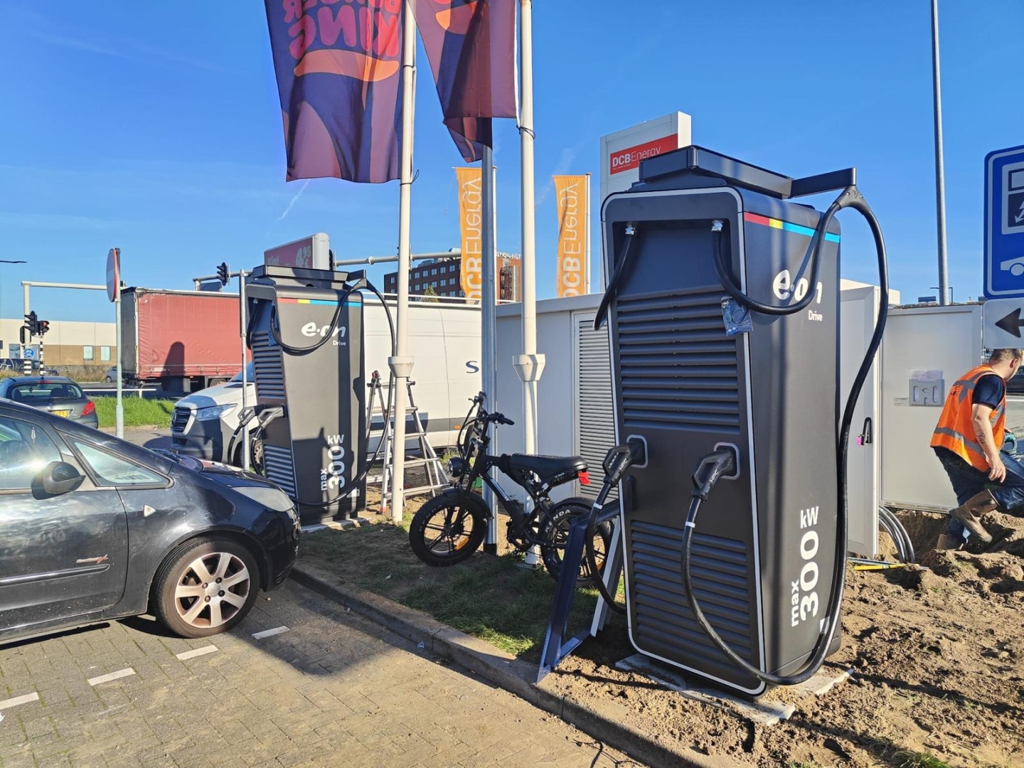 Voltens is trots om partner te zijn van E.ON E-mobility bij de ontwikkeling van het laadplein in Vlaardingen, strategisch gelegen bij Burger King en Tank Easy, vlak bij de Beneluxtunnel.